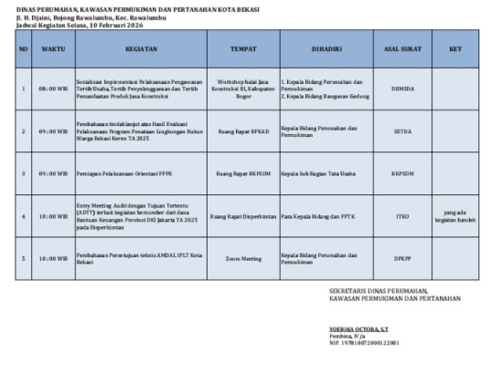 10 Februari 2026 Kegiatan AdminAgenda Kegiatan, Selasa 10 Februari 2026