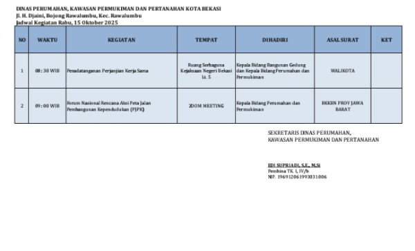 Agenda Kegiatan, Rabu 15 Oktober 2025