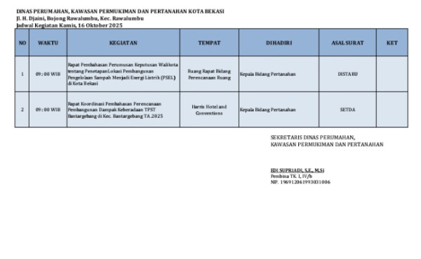 Agenda Kegiatan, Kamis 16 Oktober 2025
