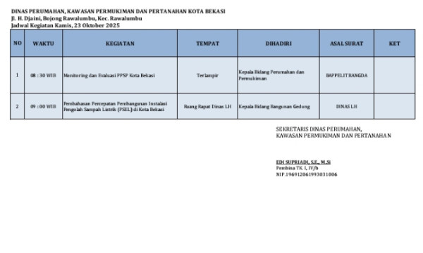 Agenda Kegiatan, Kamis 23 Oktober 2025