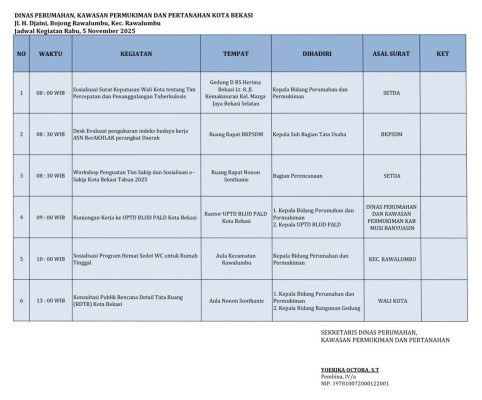 Agenda Kegiatan, Rabu 5 November 2025
