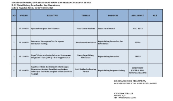 Agenda Kegiatan, Senin 10 November 2025