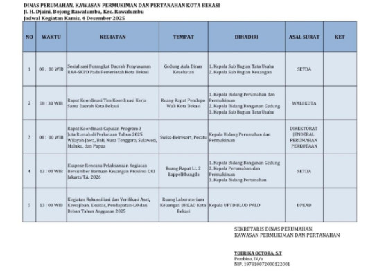 Agenda Kegiatan, Kamis 4 Desember 2025