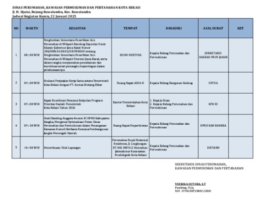 Agenda Kegiatan, Kamis 22 Januari 2026