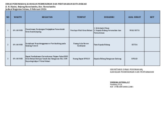 Agenda Kegiatan, Selasa 3 Februari 2026