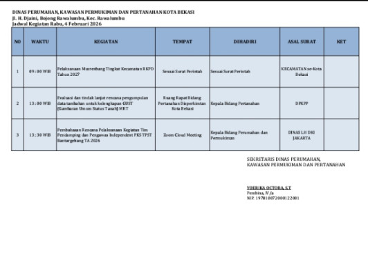 Agenda Kegiatan, Rabu 4 Februari 2026