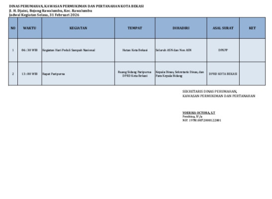 Agenda Kegiatan, Selasa 31 Maret 2026