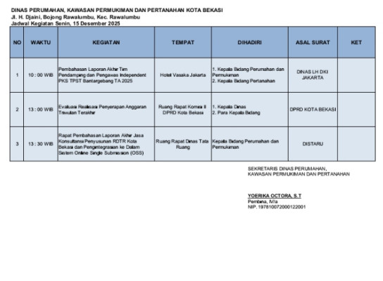 15 Desember 2025 Kegiatan AdminAgenda Kegiatan, Senin 15 Desember 2025