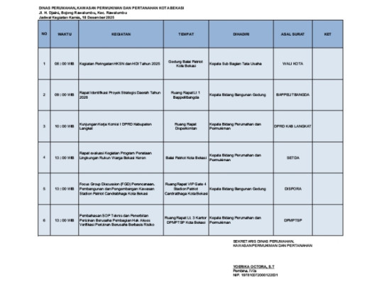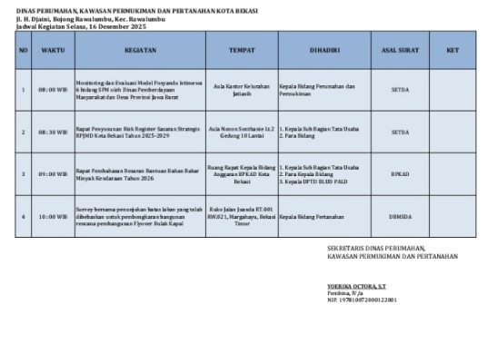 16 Desember 2025 Kegiatan AdminAgenda Kegiatan, Selasa 16 Desember 2025