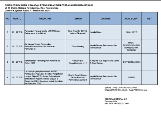 17 Desember 2025 Kegiatan AdminAgenda Kegiatan, Rabu 17 Desember 2025