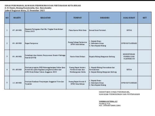 22 Desember 2025 Kegiatan AdminAgenda Kegiatan, Senin 22 Desember 2025